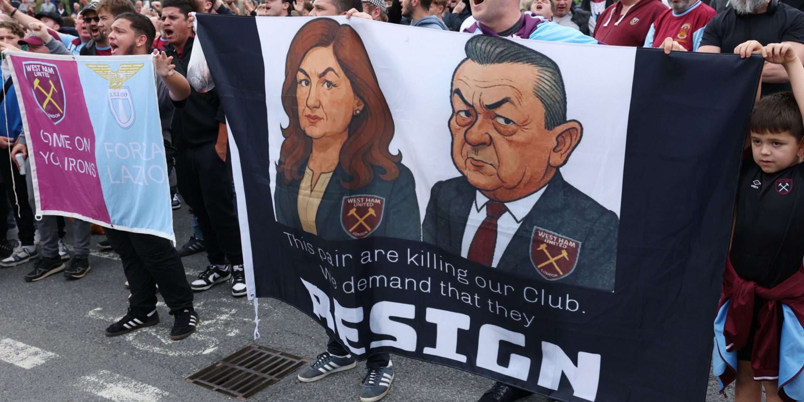 West Ham fans have been increasingly vocal in their opposition to the club’s ownership under Brady and Sullivan, with discontent reaching new heights.